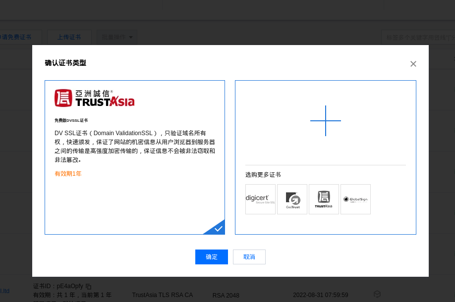 商业方案一般是公司用途,作为个人用途的证书,通常考虑价格低廉或免费证书,其中阿里云与腾讯云便有免费的DV证书提供