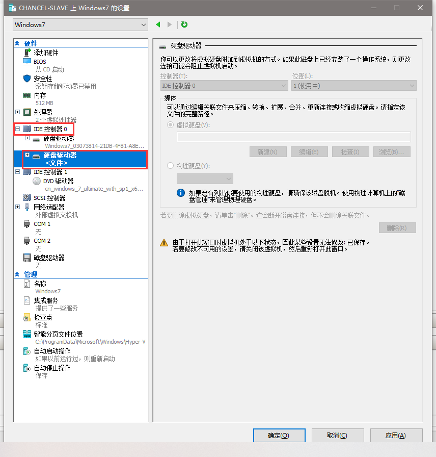 我的Hyper-v里刚好有Windows7的虚拟机,如果你没有,你也可以按照上面的思路,在任意虚拟机下添加虚拟磁盘并将IMG写入该虚拟磁盘即可