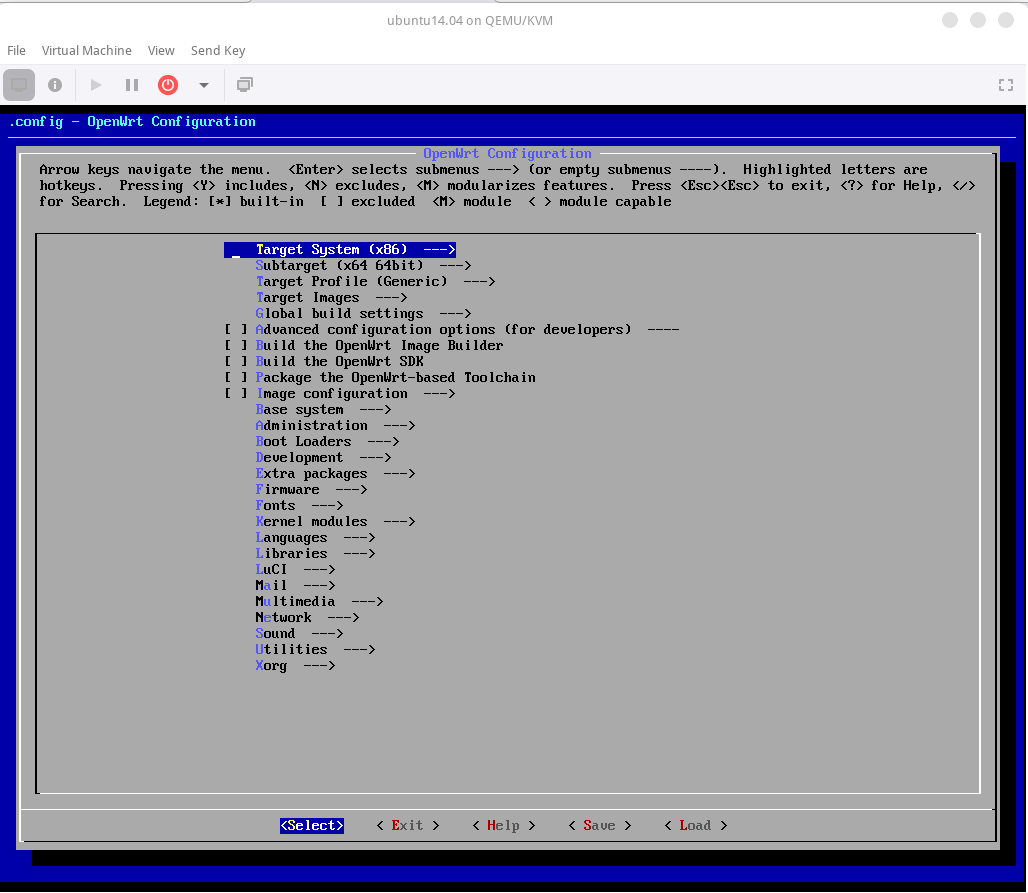 这里基本就是配置Openwrt编译内容的地方了,这个菜单有任何不懂的地方可以自行Google查询,大部分参数都是默认最好的,也就是其实什么都不做直接编译也是一个很不错的版本了