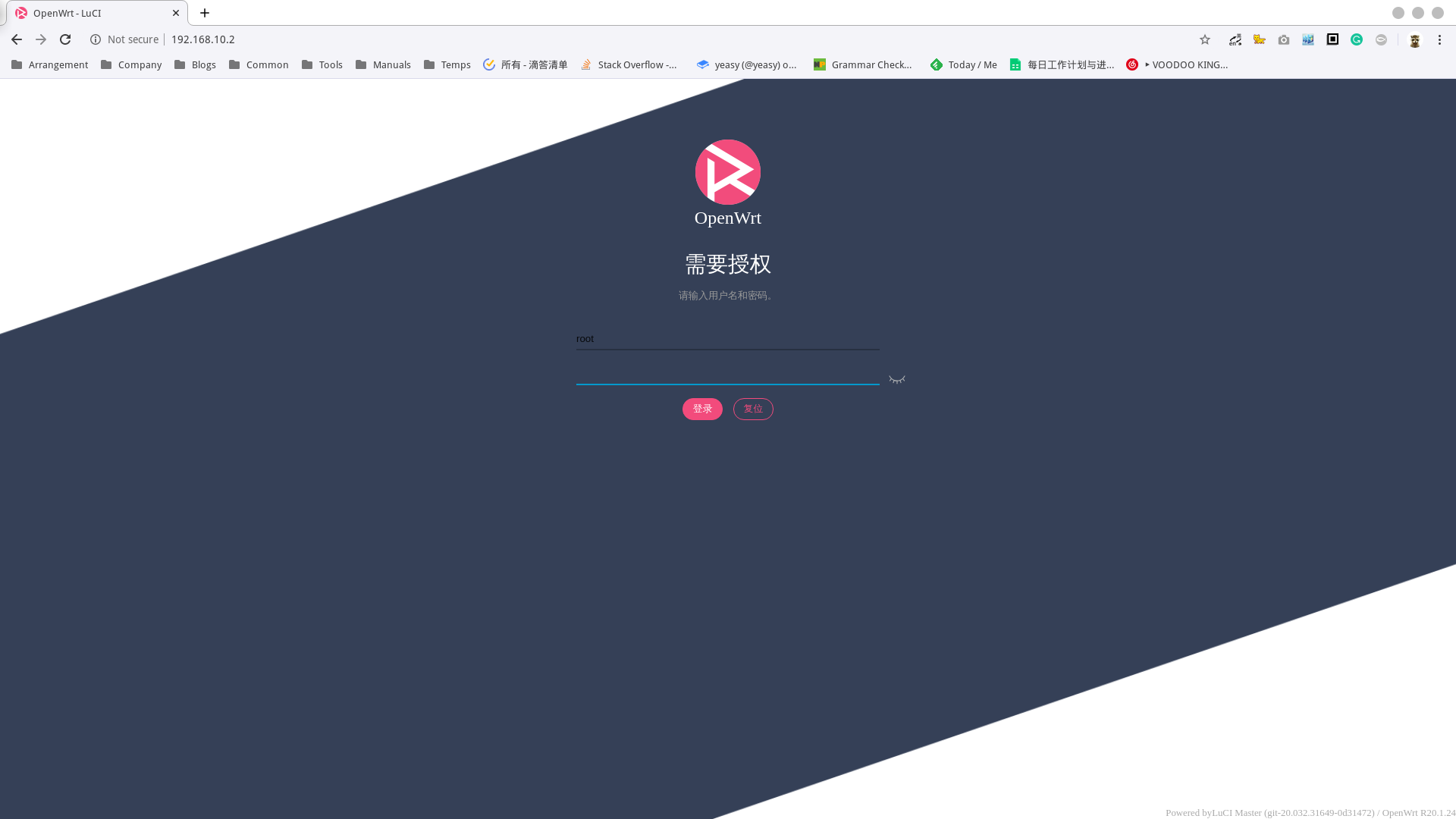 输入你为Openwrt配置的静态IP,可以看到Openwrt的欢迎页,默认密码为 password