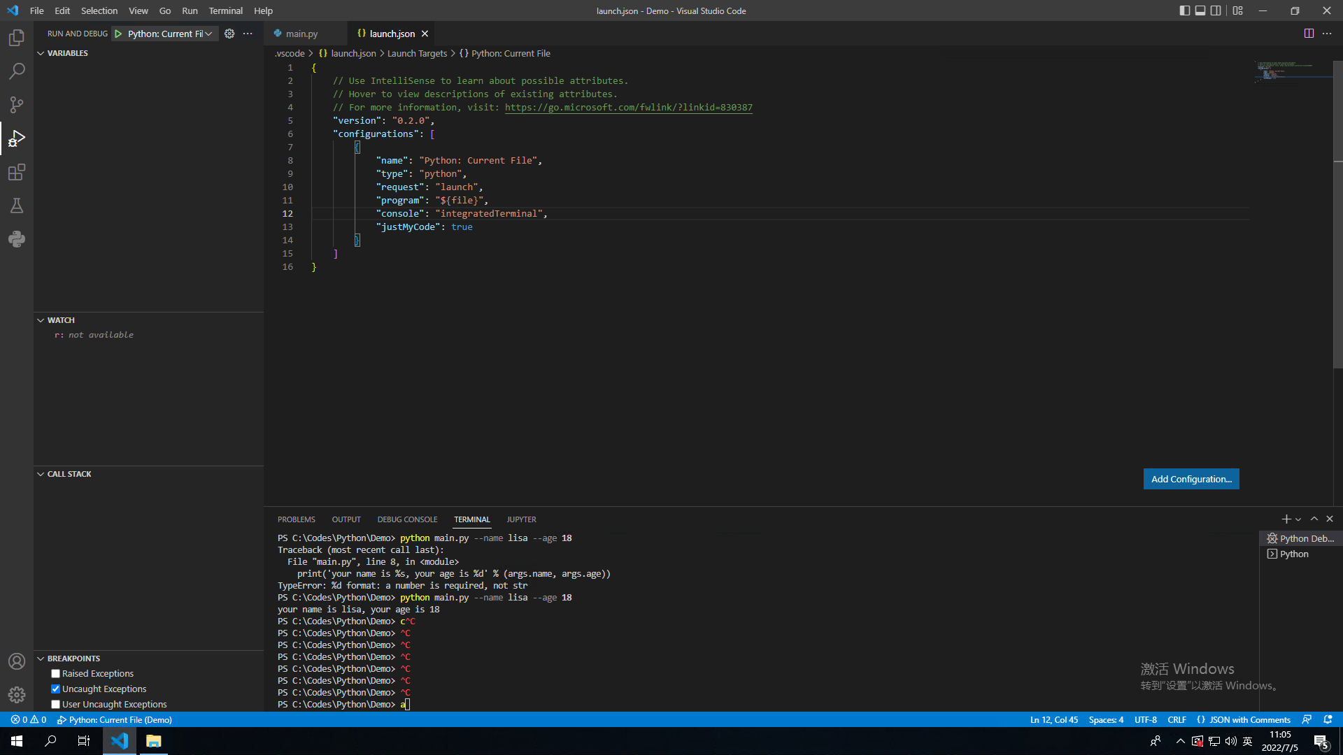 配置VSC环境后,按F5可启动当前文件DEBUG调试,类似于下面的效果