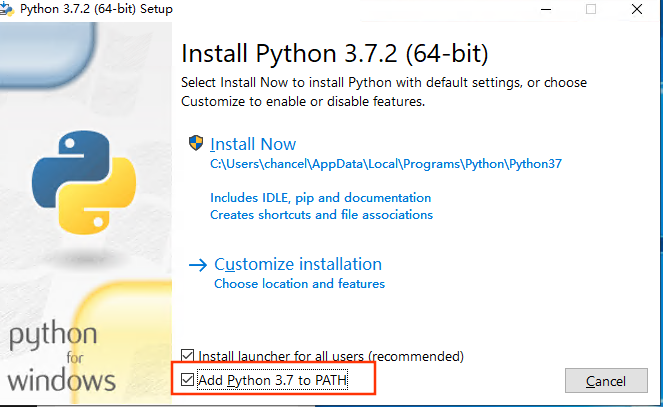 下载安装包,双击安装包,记得勾选 添加到PATH 选项,然后点击立即安装